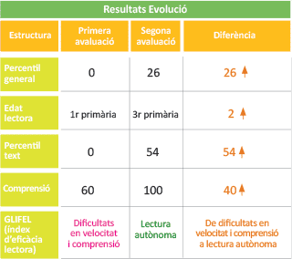Sense diagnòstic associat a les seves dificultats lectores, malgrat que els resultats de l’avaluació inicial van indicar que presentava una edat lectora de primer bàsic. La mare buscava ajuda permanentment, però l’efectivitat d’aquesta ajuda era sempre limitada, poc clara i molt descoratjadora: la resposta típica era “ha de llegir més”. Un cop avaluada, vam entendre per què no funcionava: necessitàvem anar més enrere per començar a sanar.